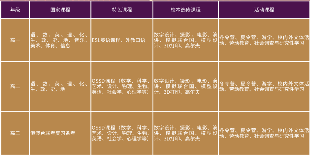 華美學(xué)校構(gòu)建了“國家課程+OSSD課程+聯(lián)招備考課程(港澳籍)”三位一體的課程體系,確保每個學(xué)生“多元升學(xué),全面發(fā)展”。
