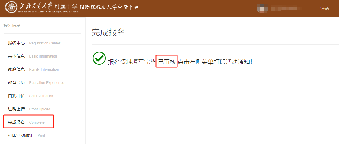 已完成報名資料填報的同學/家長請關注后臺審核情況,審核未通過的,請及時根據提示重新提交相關資料,審核成功會顯示【已審核】。