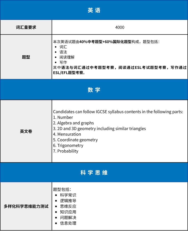 英語(yǔ)、數(shù)學(xué)(英文卷)、科學(xué)思維(中文卷)