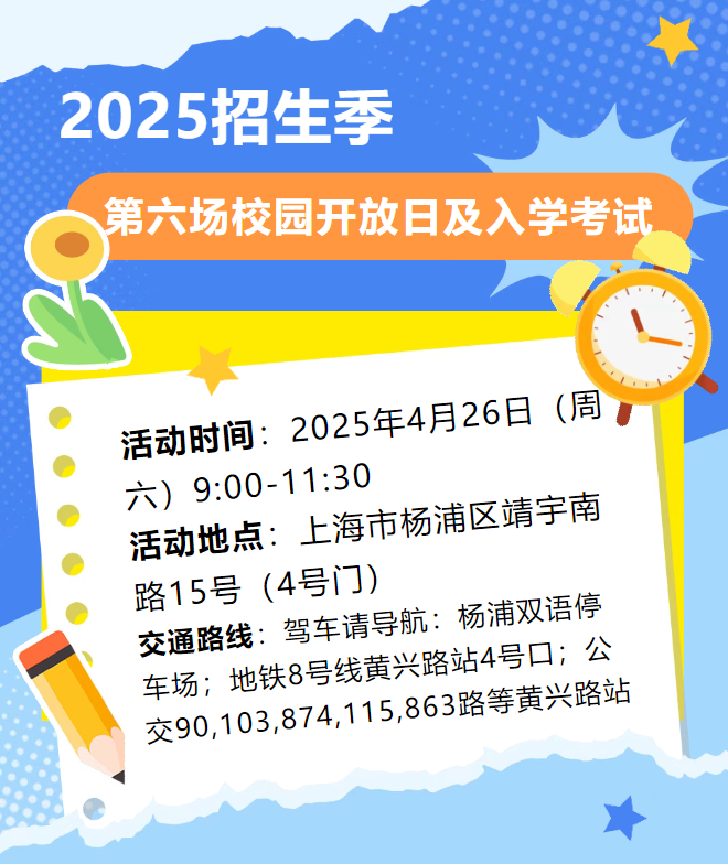 上海楊浦雙語學校國際高中即將在2023年12月24日(周日)早上9:30迎...