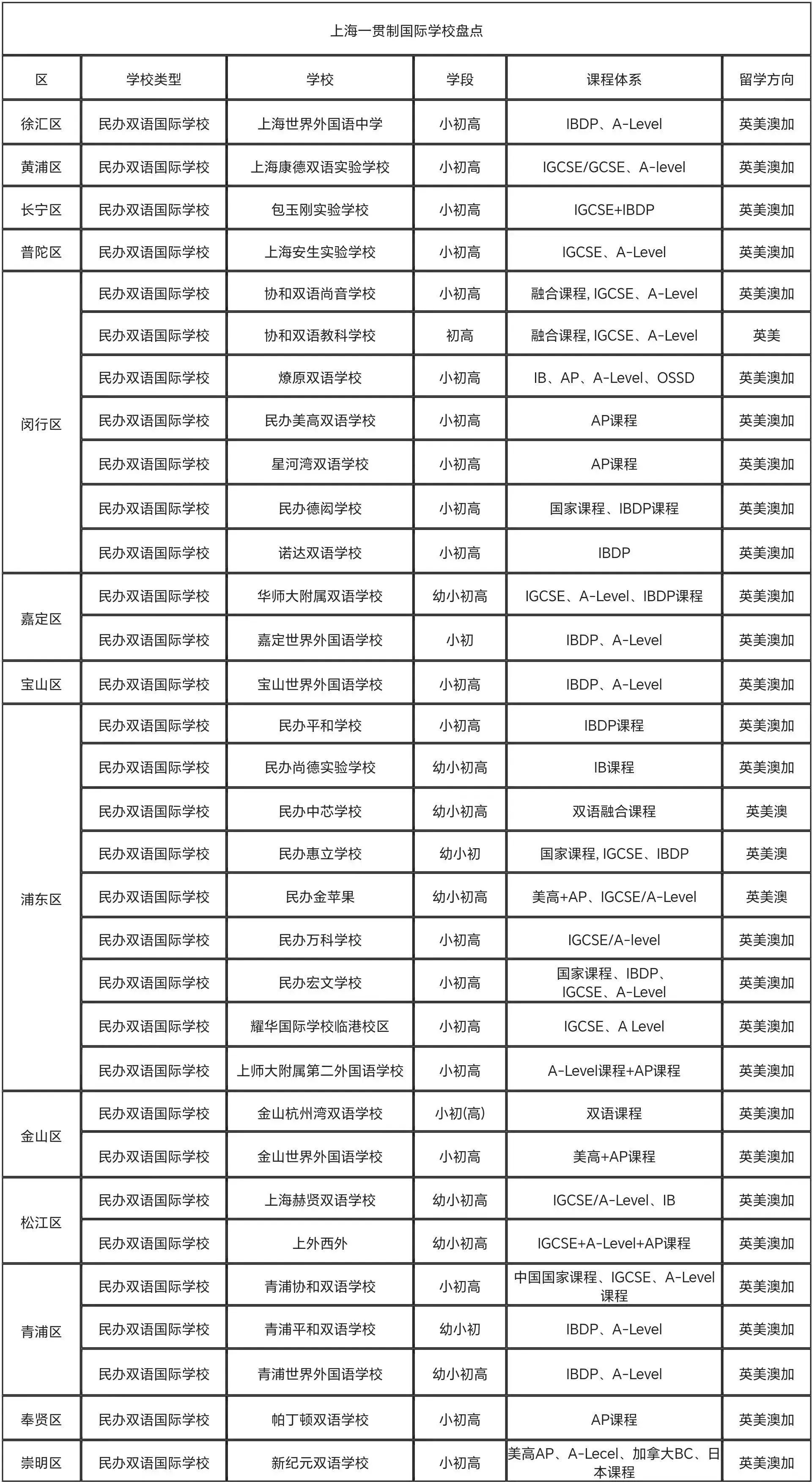 虹口和靜安目前沒有民辦一貫制學校,其他14個區,從九年一貫制到十五年一貫制的學校都有,家長們可以自由選擇。
