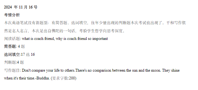 世外是“四校”中唯一一所開設(shè)語文筆試的學(xué)校。今年考試時(shí)間縮短、題型也相應(yīng)的減少了。