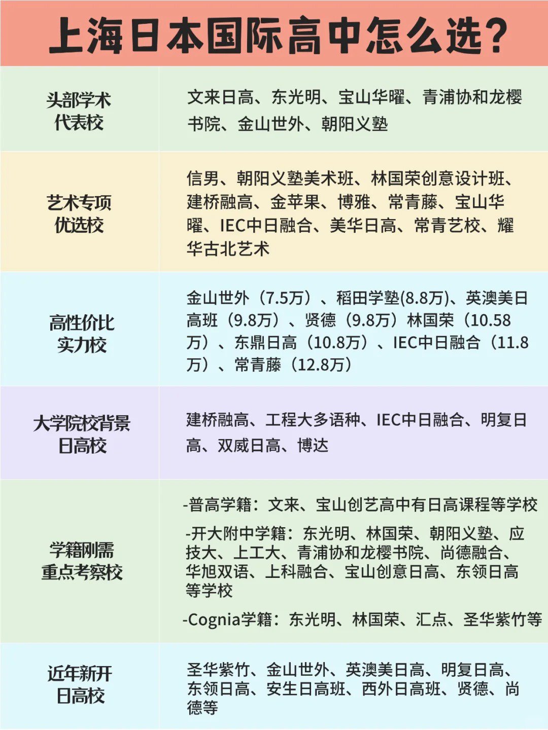 面對上海眾多的日本高中課程,家長往往感到無從下手。其實(shí),只需根據(jù)學(xué)校的核心特點(diǎn)進(jìn)行分類篩選,就能快速鎖定適合孩子的方向。本文將上海日高學(xué)校劃分為六大類型,涵蓋學(xué)術(shù)強(qiáng)校、藝術(shù)專項(xiàng)、性價(jià)比優(yōu)選等維度,助你高效完成擇校決策。