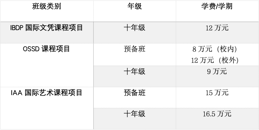 學費參考:小學20400元/生·學期,初中23400元/生·學期